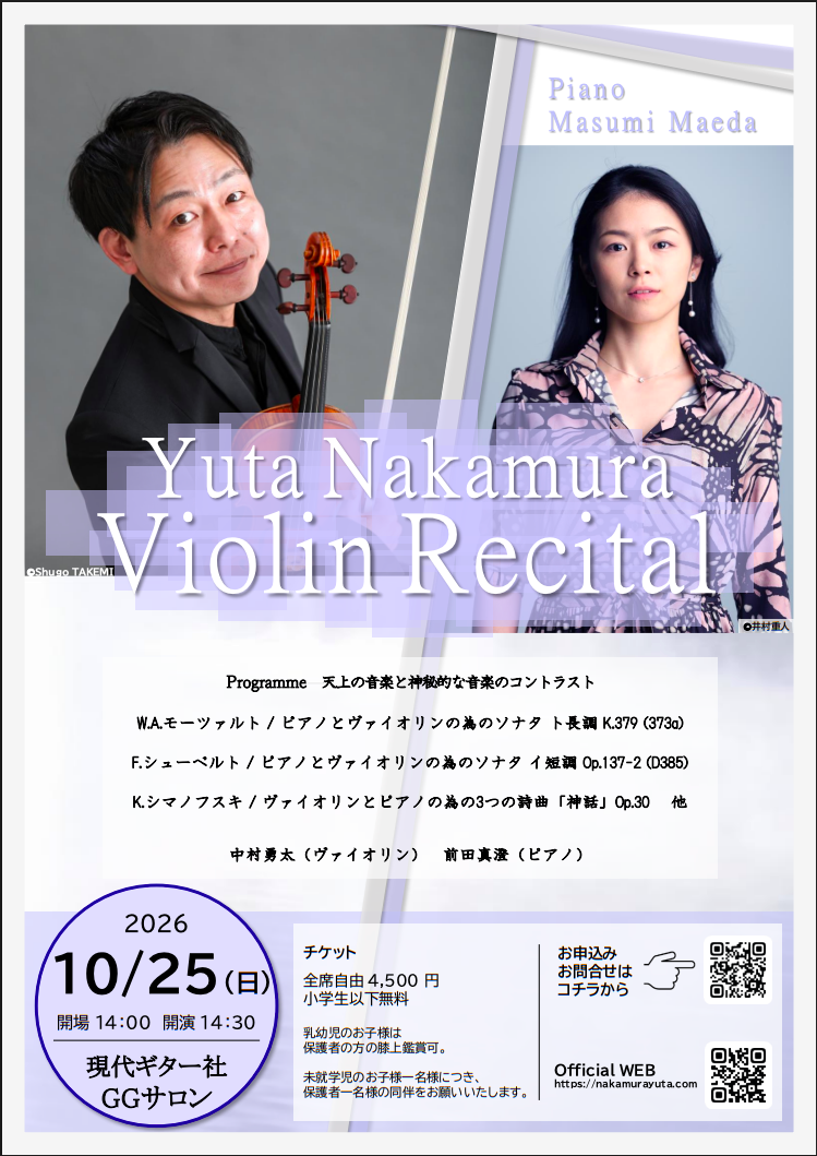 ヴァイオリニスト 中村勇太のWEBサイトへようこそ。
