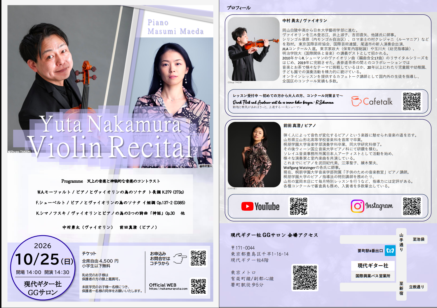 プログラムにこだわった演奏活動、技術と信頼のレッスンのご紹介です。